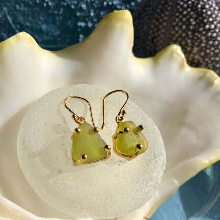 De smukke afrundede havglas er her indfattet i 18 karats guldbelagt Sterling sølv 925