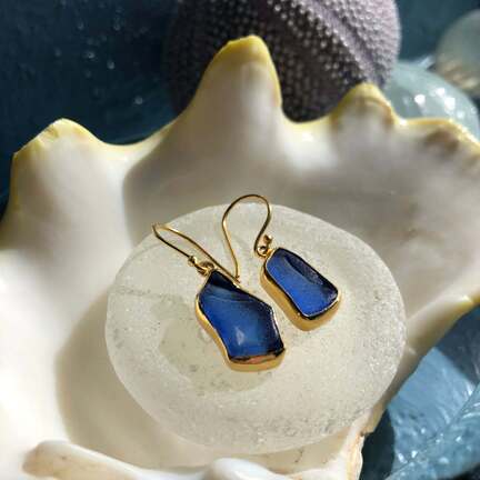 De unikke koboltblå havglas, har engang været vinduer i et antikt balinesisk hus. De er indfattet i18k guldbelagt sterling sølv.