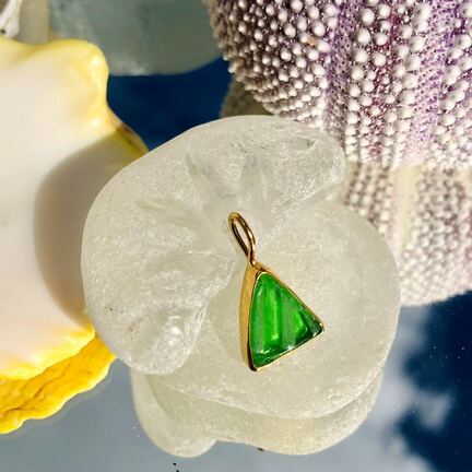 Lille vedhæng i 18k guldbelagt Sterling sølv, med unikt mønstret havglas. Mål ca. 13 mm