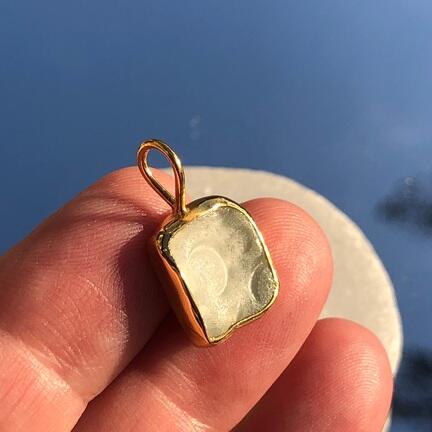 Lille vedhæng i 18 karats guldbelagt Sterling sølv, med unikt mønstret havglas. Mål ca. 13 mm