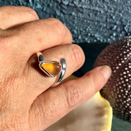 Den yndigste ring, med et perfekt stykke orange havglas.