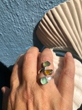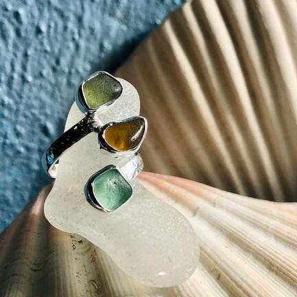 Smuk Havfruering i Sterling sølv, med 3 stykker indfattet autentisk havglas.