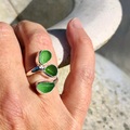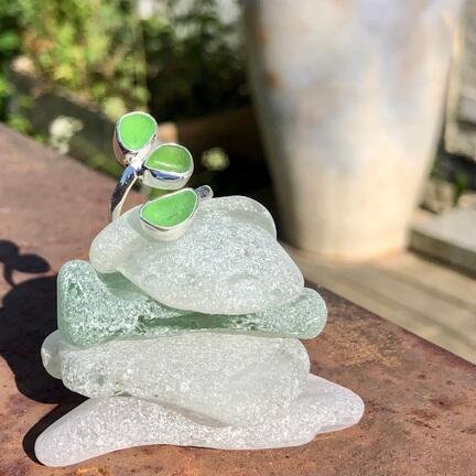 Smuk Havfruering i Sterling sølv, med 3 stykker indfattet autentisk havglas.