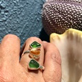Smuk Havfruering i Sterling sølv, med 3 stykker indfattet autentisk havglas.