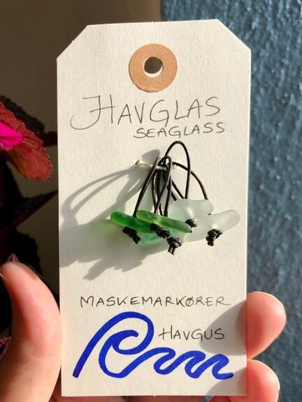 5 stk maskemarkører af det smukkeste havglas og lædersnor.
