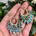Monteret i messing, med små stykker indfattet perlemor og Sterling sølv gennem øret.