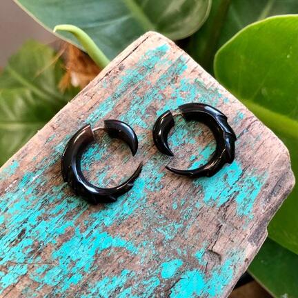 De fine små øresmykker er lavet af håndskåret horn.
