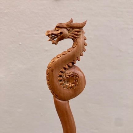 Det smukke drage hårsmykke er kunstfærdigt håndskåret i træ.