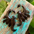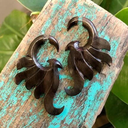 Smukt hånd-udskårne øresmykker i bæredygtigt frugttræ.