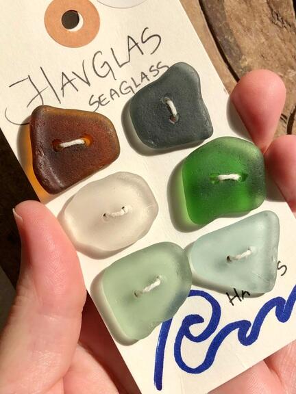 De smukke knapper er lavet af autentisk uforarbejdet havglas, fundet på stranden.