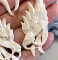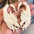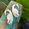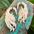 Smukt håndskårne og utroligt detaljerede drage øresmykker i ben.