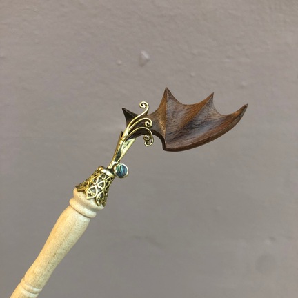 Håndlavet i bæredygtigt træ og håndskåret perlemor indfattet i messing, med et meget lækkert finish. Længde ca. 20 cm