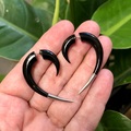 Smukt hånd-udskårne øreringe i sort vandbøffel-horn.