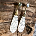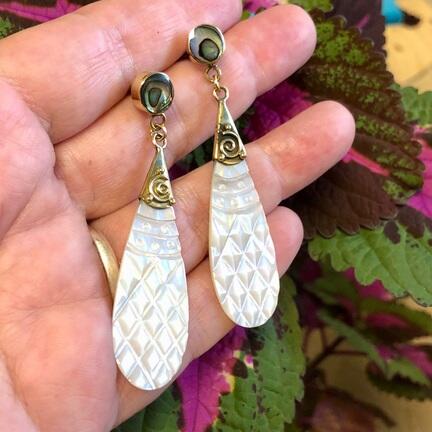 Smukke øresmykker, håndskåret i det mest vidunderlige funklende perlemor, indfattet i messing.