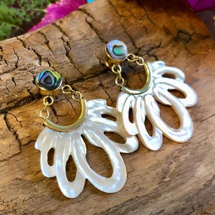 Håndskåret øresmykke i gyldent perlemor
